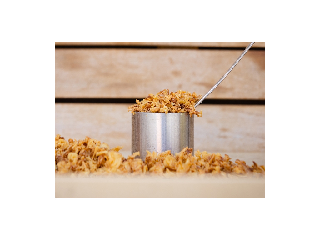 Dostaň do jídla křupavou texturu a sladkou chuť cibulky bez pánve a oleje - vsaď na naši smaženou cibuli. Perfektně doladí polévky, burgery, hot dogy, saláty nebo třeba milované české klasiky. Přisypej ji těsně před podáváním a udělej tu nejlepší tečku za svým jídlem.