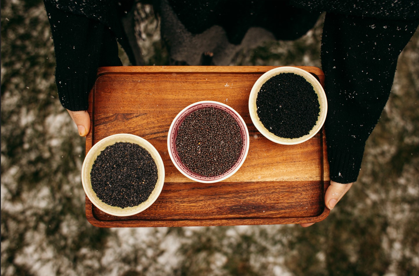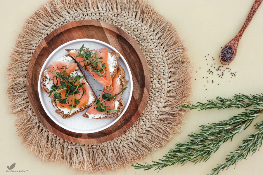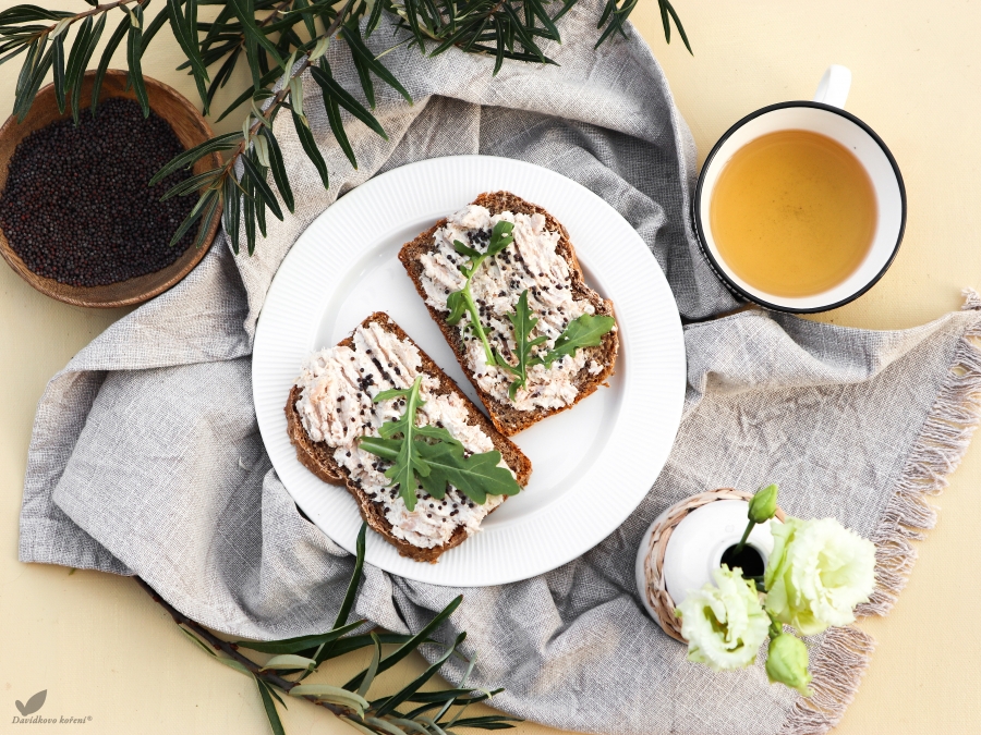A poměrně novým parťákem k sezamu je černé hořčičné semínko. Má trochu výraznější chuť než klasické, minerály je stejně nadupané, ale chuť má tak lahodnou, že se hodí i k přímému použití. Skvěle doplňuje naši oblíbenou snídaňovou pomazánku z tuňáka, lososa nebo chlebíček přímo s uzeným lososem.