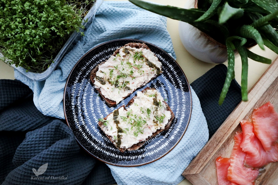 Sypu si tyhle bylinky na domácí chleba s lučinou a na ně si dávám tuňáka, lososa, rajčátka, čerstvé bylinky, vařená vajíčka... Obzvlášť dobře se vyjímají v této lososové pomazánce.