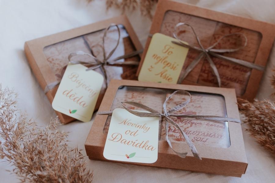 Již několikátý rok u nás nakupujete dárkové balíčky pro babičky, maminky, táty, dědy, kamarády, vaše milé ženy i muže. Složení setů je vyvážené a promyšlené tak, abyste udělali radost opravdu každému. Druhým rokem již prodáváme i kořenky s masivním dubovým víčkem a našimi černými designovými etiketami s jemným bílým textem. Ty se staly trhákem loňských Vánoc. Jen letos jsme prodali přes 7 tisíc kořenek. Udělat z nich šikovnou sadu pak bylo přirozeným vývojem.