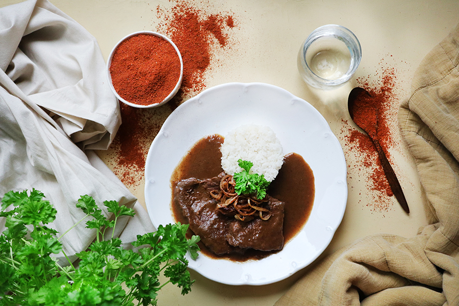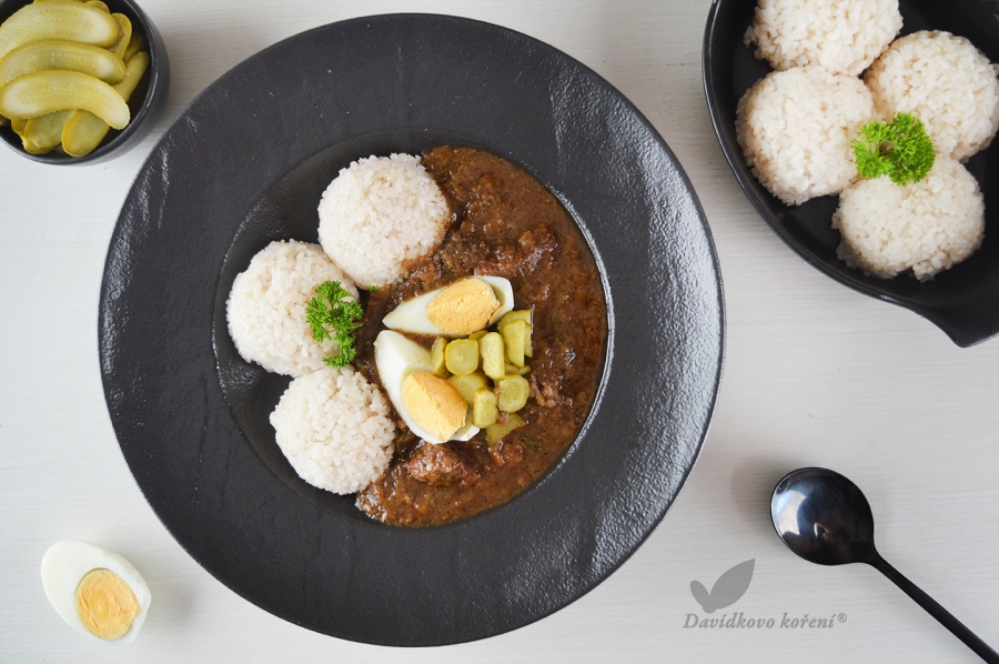 👉 Hovězí po znojemsku s rýží – klasika s okurkovou omáčkou.