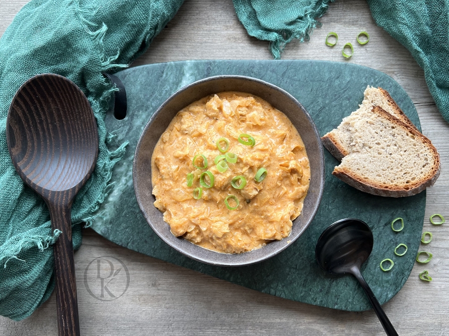 Kyslá kapusta, krémová rastlinná smotana a dokonalé korenie. Táto rastlinná verzia klasiky sa jednoducho pripravuje a vždy poteší. Skvelé k žemľovej knedli alebo s celozrnnou ryžou.