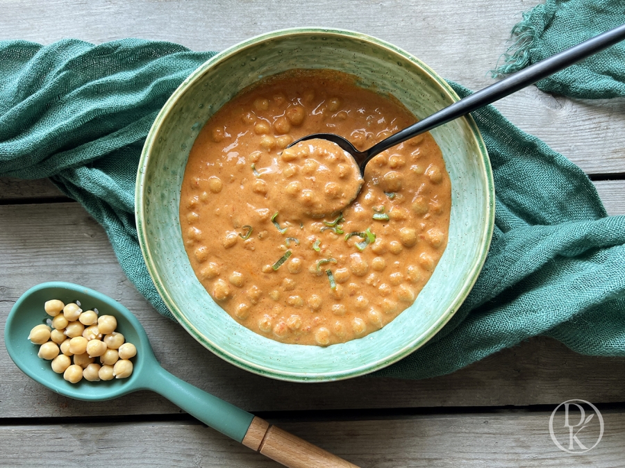 Bezmäsitá alternatíva kuraťa na paprike, ktorá nikdy nesklame. Jemná omáčka s rastlinnou smotanou a bohatá chuť cíceru zaručí spokojnosť každého.